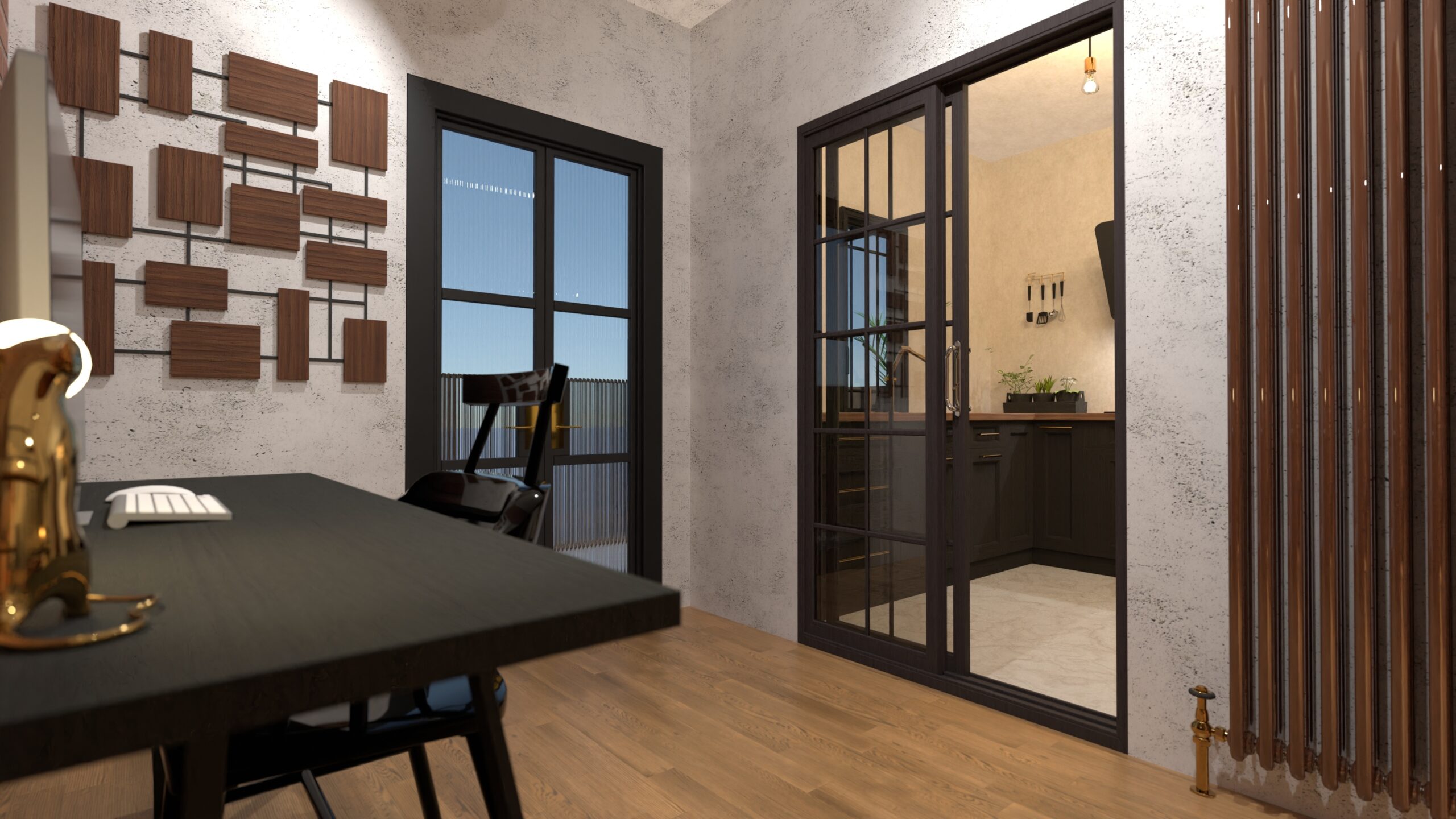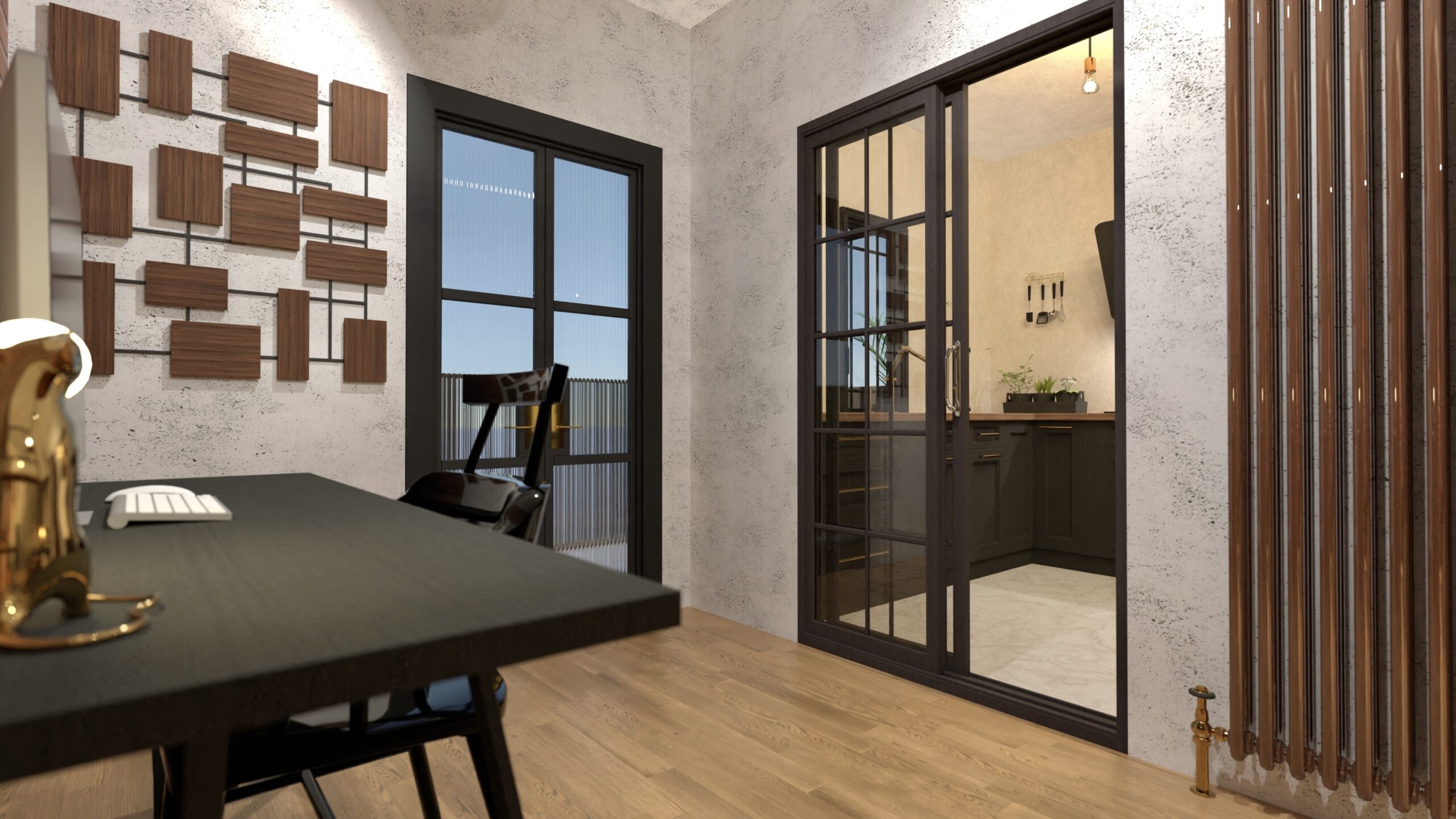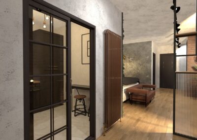 Un apartament-studio de 40 mp gândit pentru un tânăr freelancer care își dorește un spațiu coerent, masculin și funcțional, un refugiu urban unde designul industrial se împletește cu accente calde și un stil de viață modern.