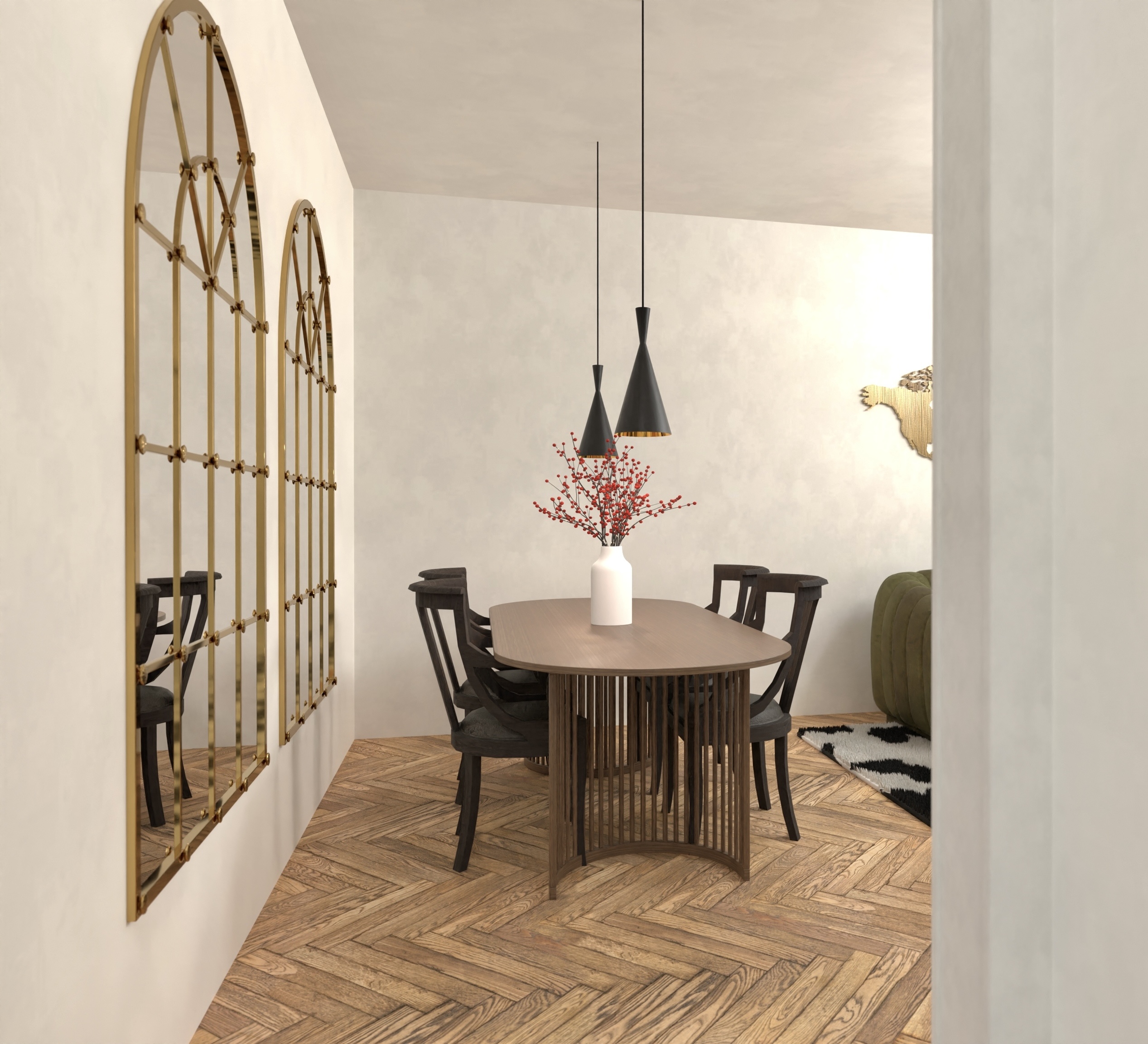 Această selecție reunește trei proiecte fictive de design interior rezidențial, fiecare definit printr-o identitate proprie: un studio în stil industrial, un apartament japandi cu două camere și un apartament eclectic art deco cu trei camere. Fiecare proiect reprezintă un exercițiu de stil, compoziție și funcționalitate, realizat cu atenție la detalii și coerență spațială.