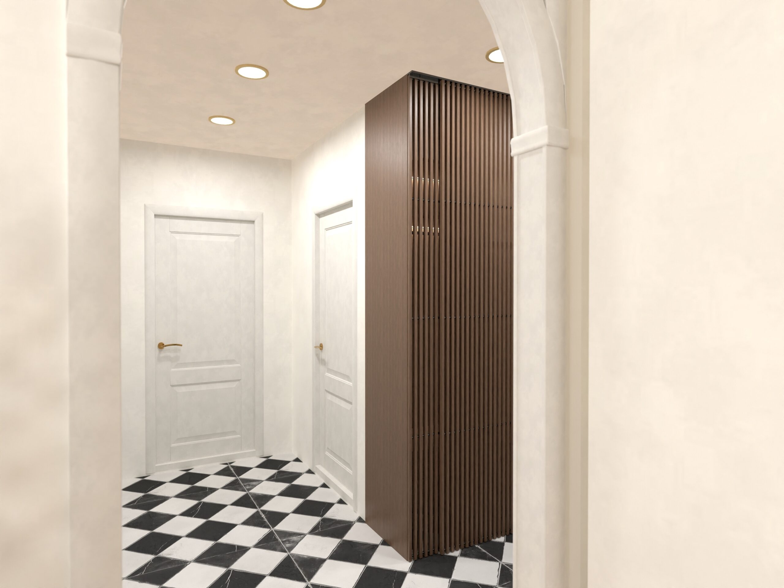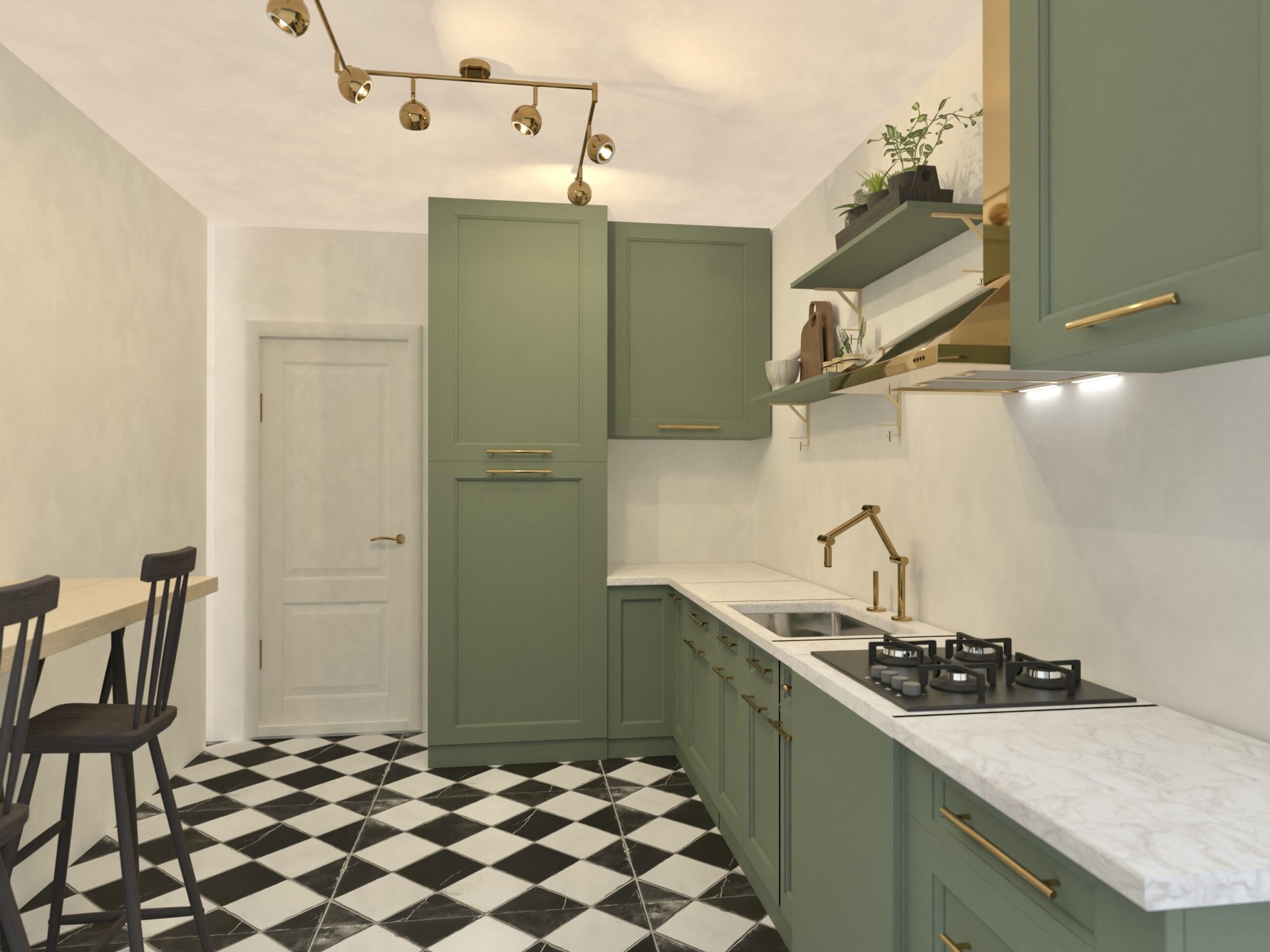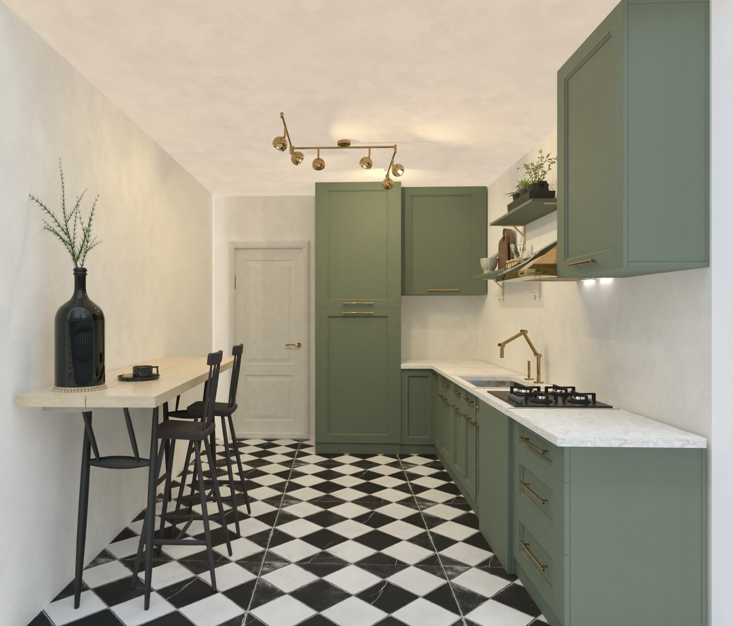 Rezultatul: un interior bogat în texturi, forme geometrice și accente aurii, dar cu o atmosferă caldă, primitoare.