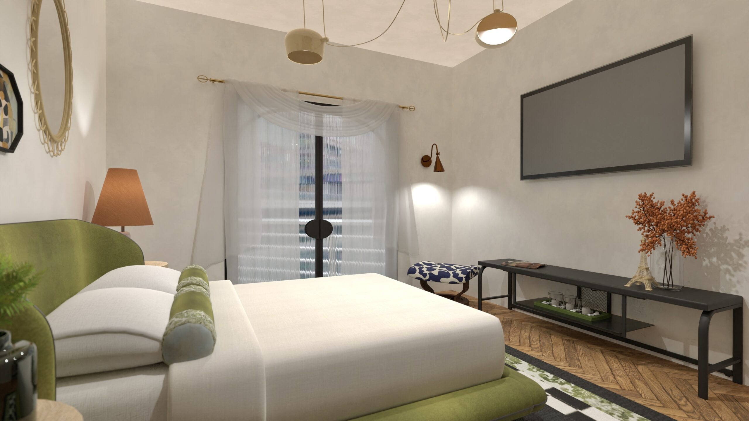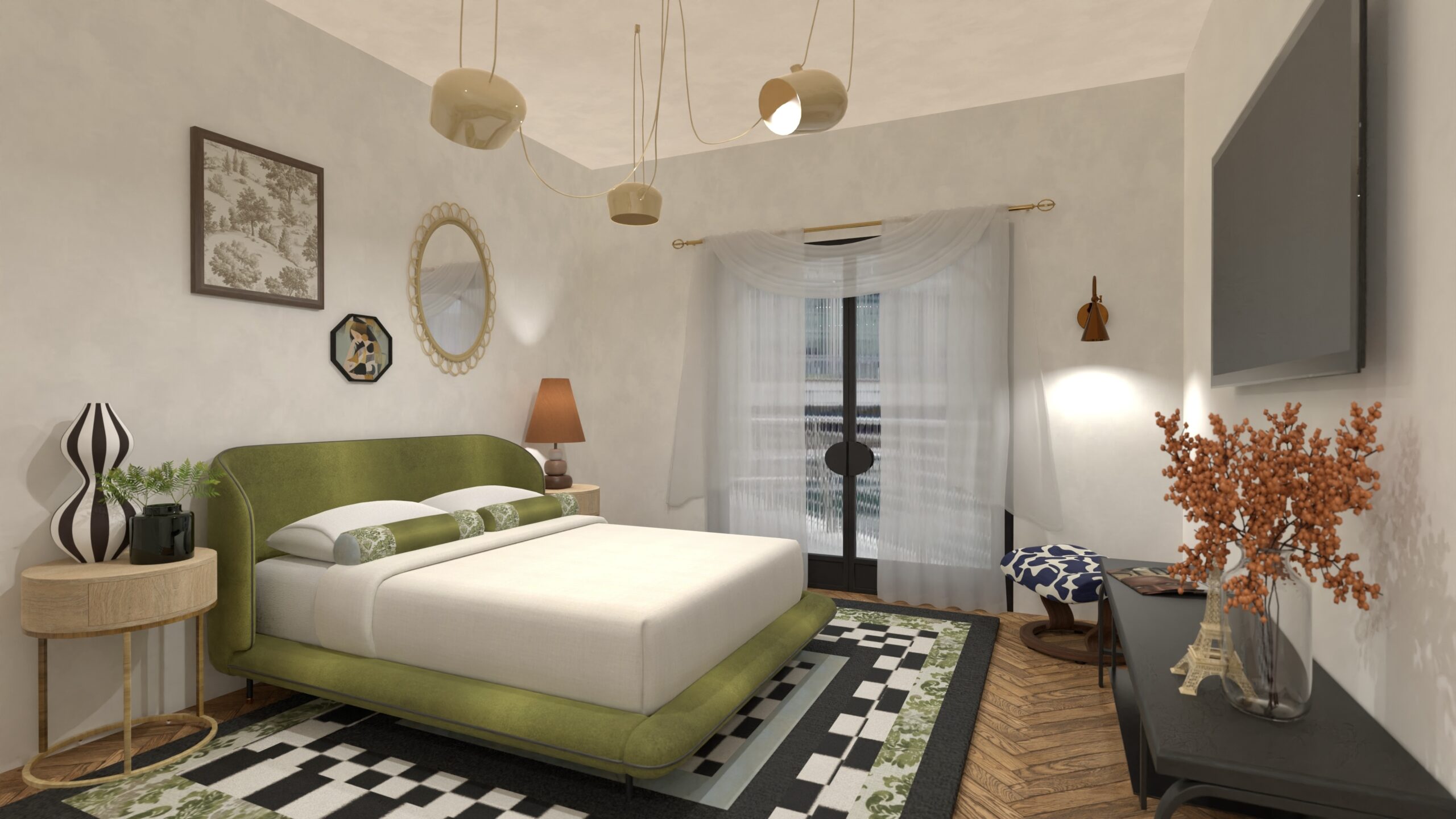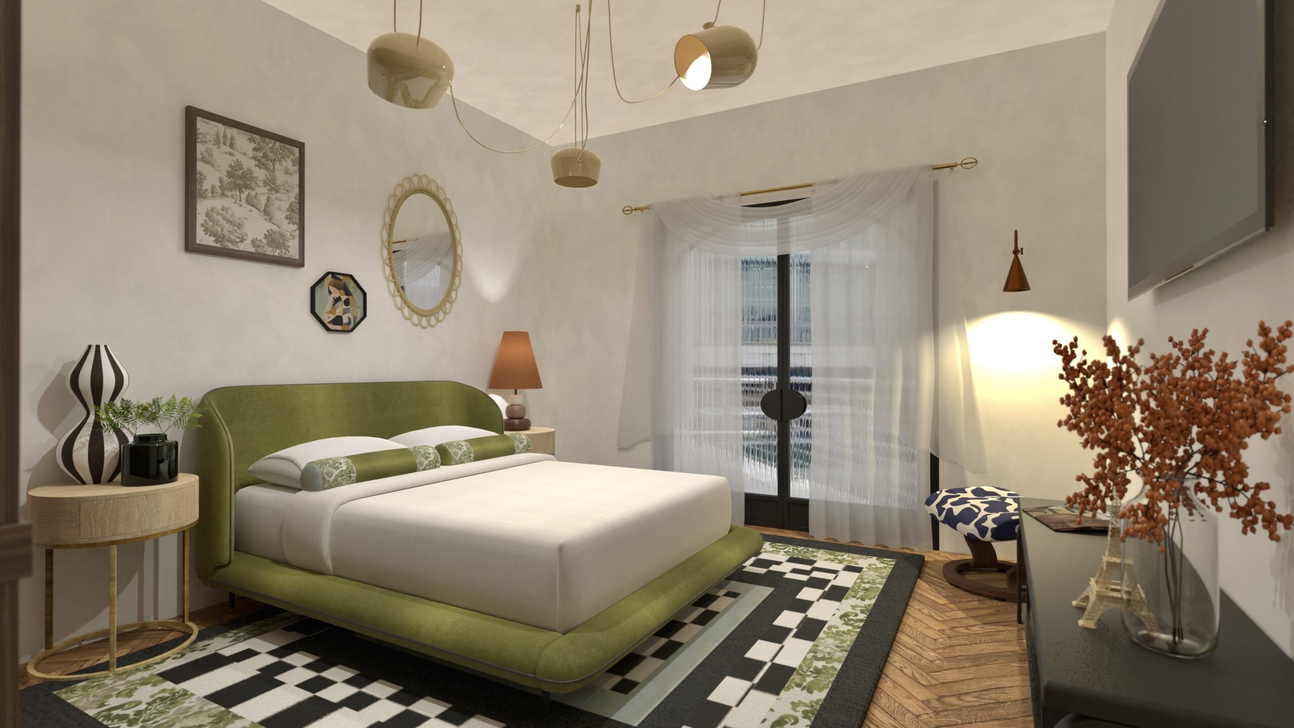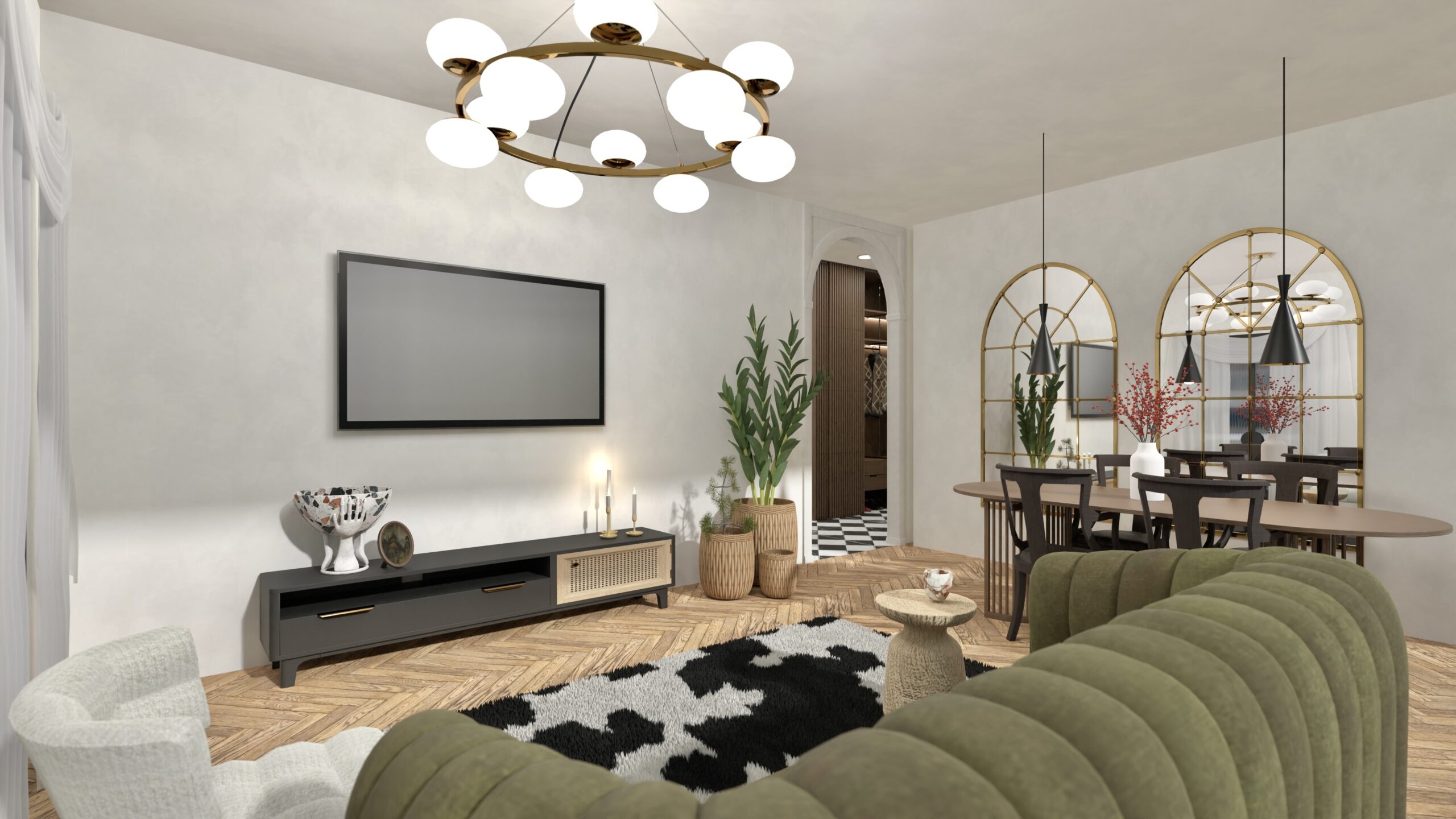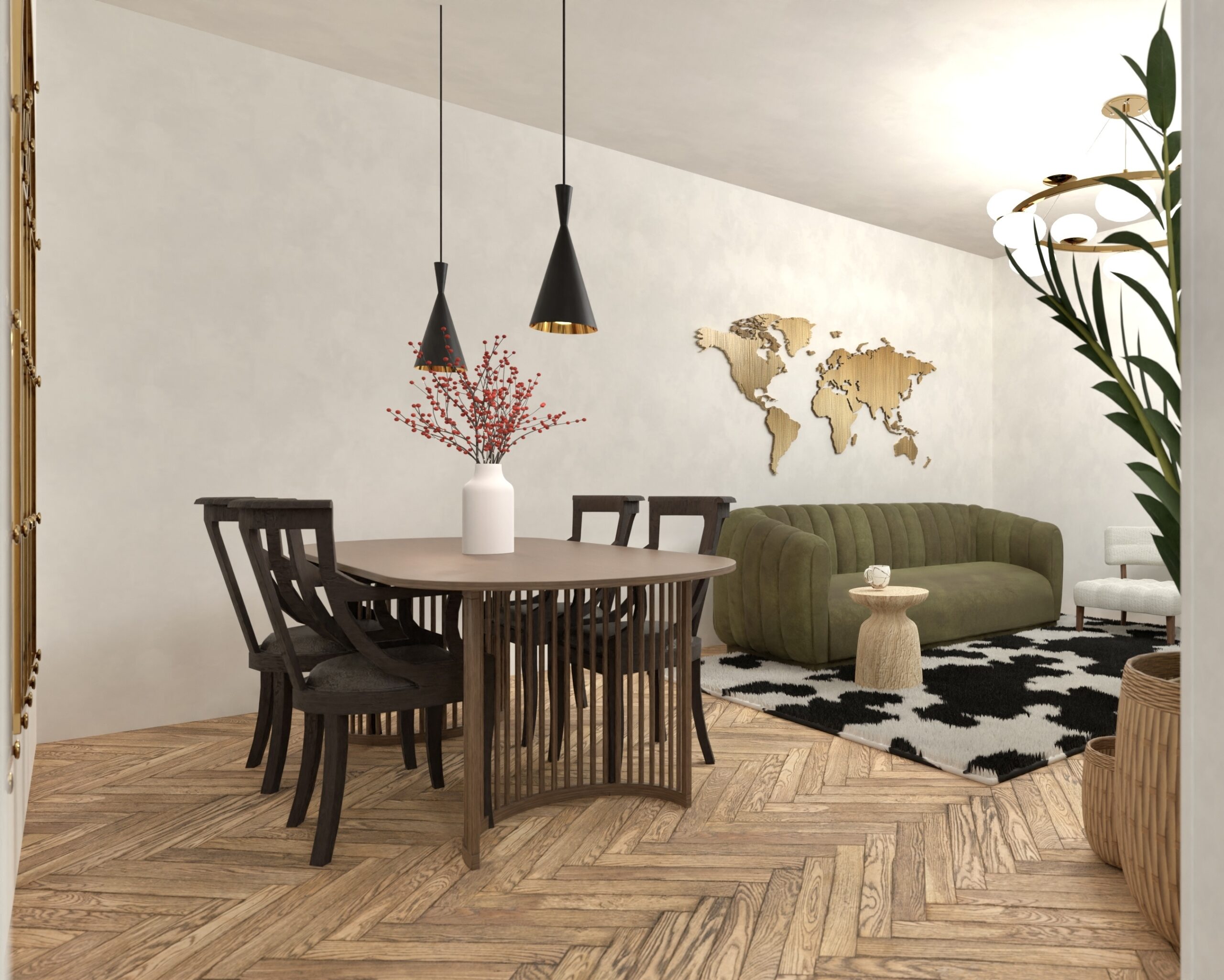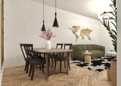 Un spațiu sofisticat, dar viu — în care Art Deco întâlnește eclecticismul cu eleganță și curaj.
